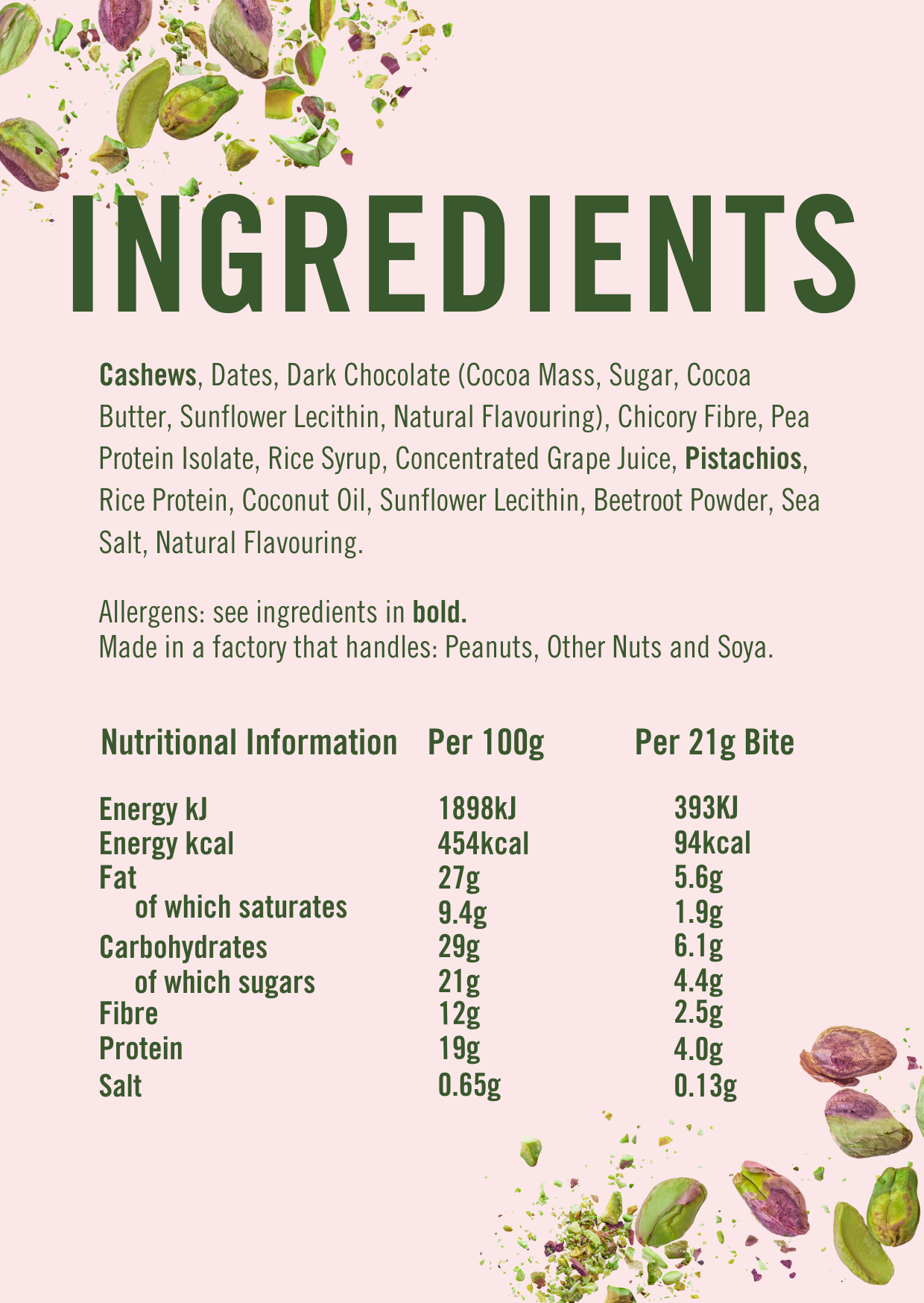 With a balance of floral and nutty notes, Rose & Pistachio is quietly luxurious. Rose brings a floral lift, while pistachio adds warmth and depth. Together, with our rich dark chocolate, they create a refined, well-balanced flavour that’s irresistibly elegant.